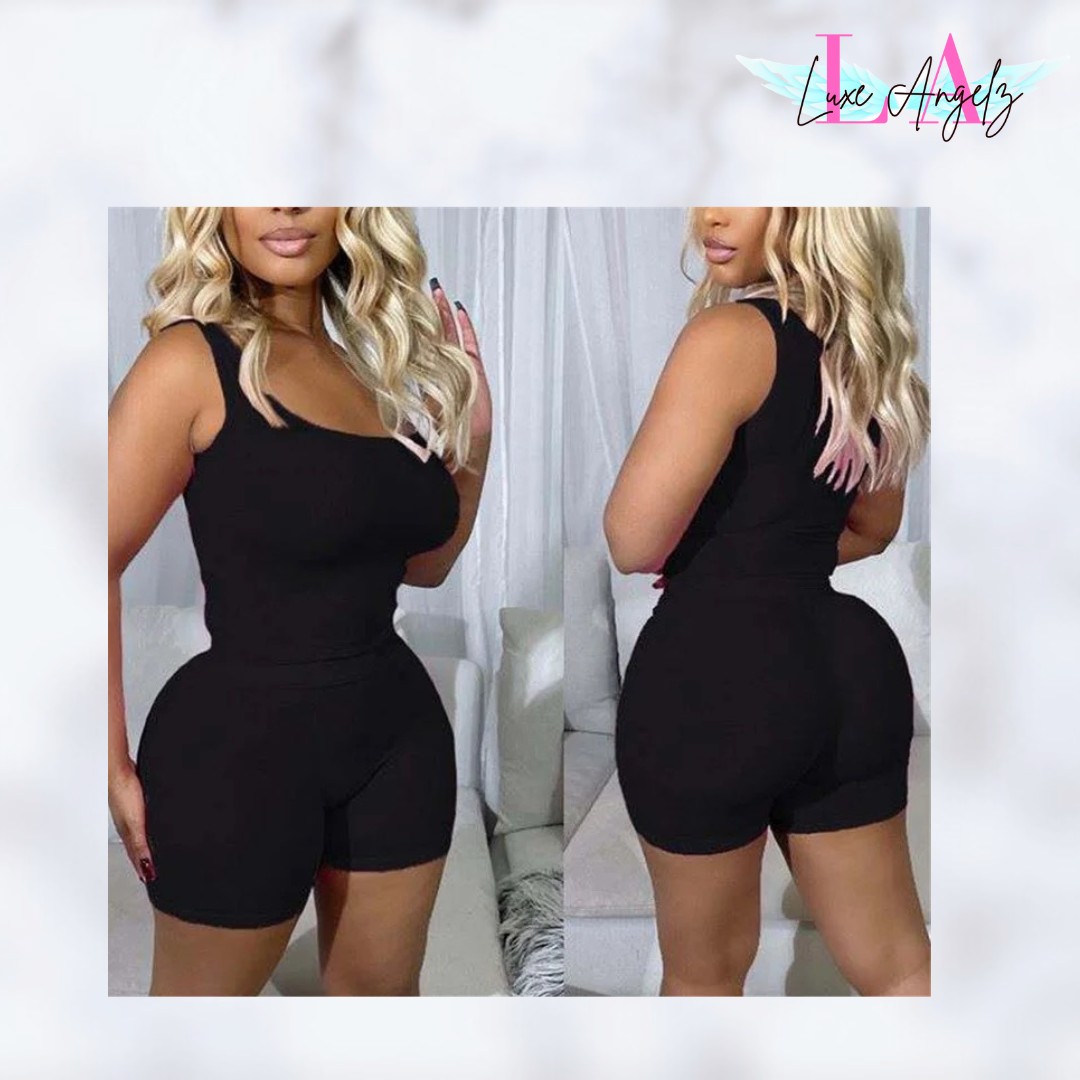 Two piece ribbed top and shorts set