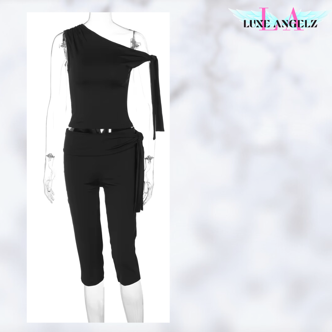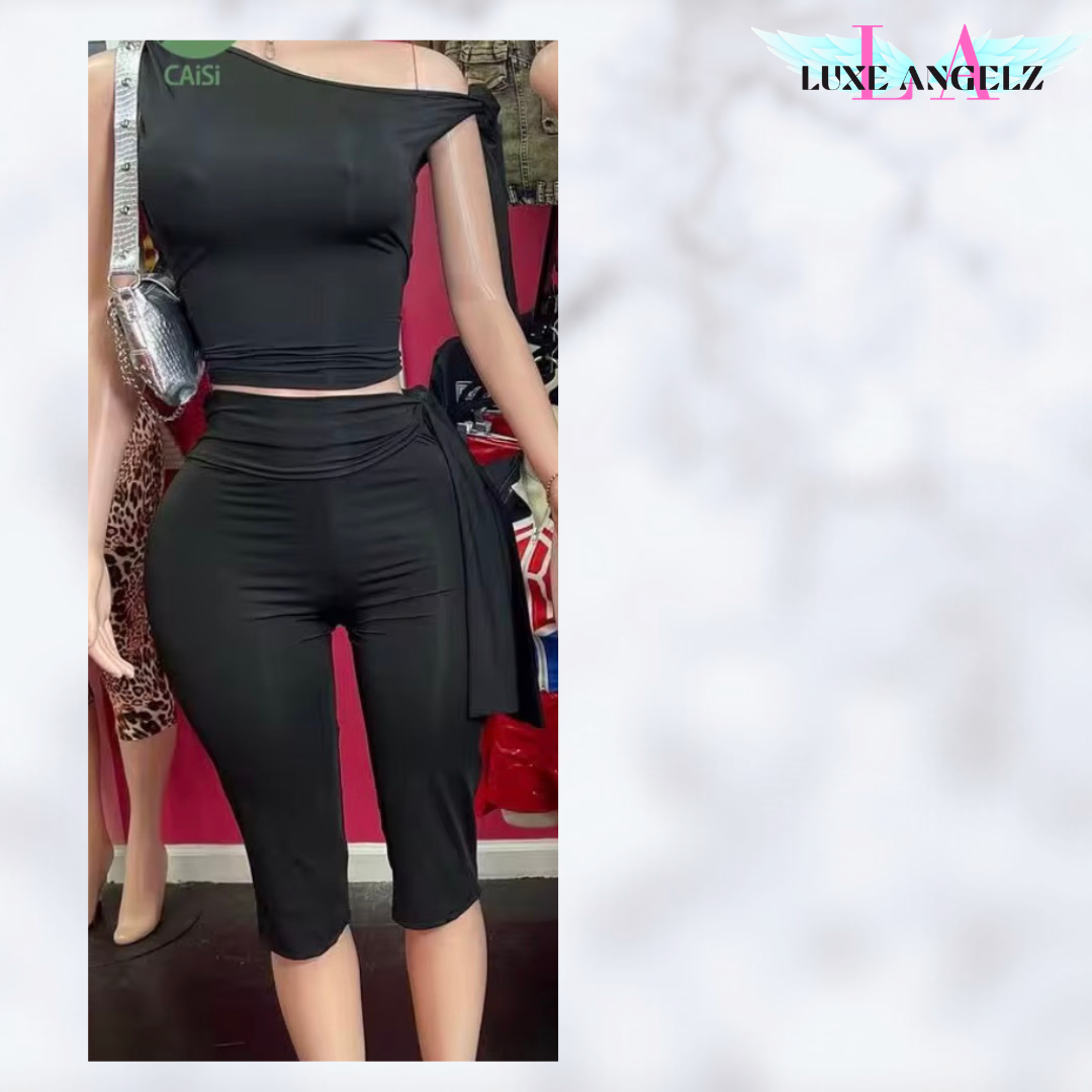 Two piece capri pants set with off shoulder top